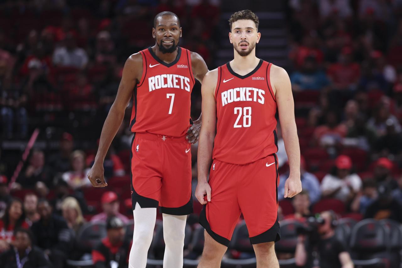 火箭队,首发阵容阿门+申京+杜兰特+史密斯四人相对稳定,乌度卡在排兵布阵上有多重选择,可以选择摆大阵容上亚当斯,也可以摆奥科吉,让阵容更加均衡,还可以上谢泼德,让首发阵容多一位组织和串联的空间点。