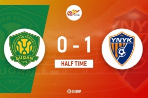 第30分钟,云南玉昆右路攻势,约尼查第一下传中被挡回,随后人群中将球一捅,叶楚贵点球点附近直接推射破门!云南玉昆客场1-0领先北京国安↓